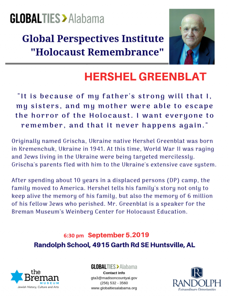 Global Perspectives Institute Presents: Hershell Greenblat Posted on June 11, 2019 | by Global Ties Alabama