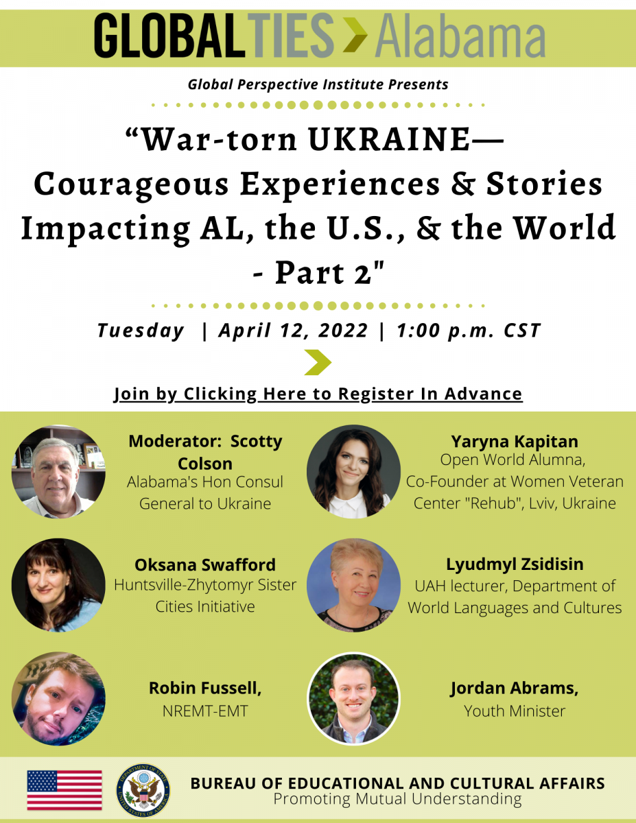 April 12, 2022- War-torn UKRAINE— Courageous Experiences & Stories Impacting Alabama & the U.S. - Part 2